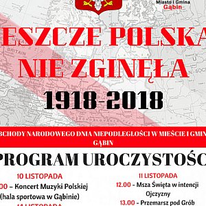 W setną rocznicę odzyskania Niepodległości przez Polskę, obchody w Gąbinie będą wyjątkowe. Rozpoczną się 10 listopada w hali sportowej. O godzinie 17 rozpocznie się tam Koncert Muzyki Polskiej. Kulminacyjnym punktem obchodów będzie Msza Święta w dniu 11 listopada. Eucharystia rozpocznie się o godzinie 12 w gąbińskim kościele. Ostatnim wydarzeniem, organizowanym w ramach obchodów Święta Niepodległości będzie Bieg Niepodległości zaplanowany na 14 listopada.